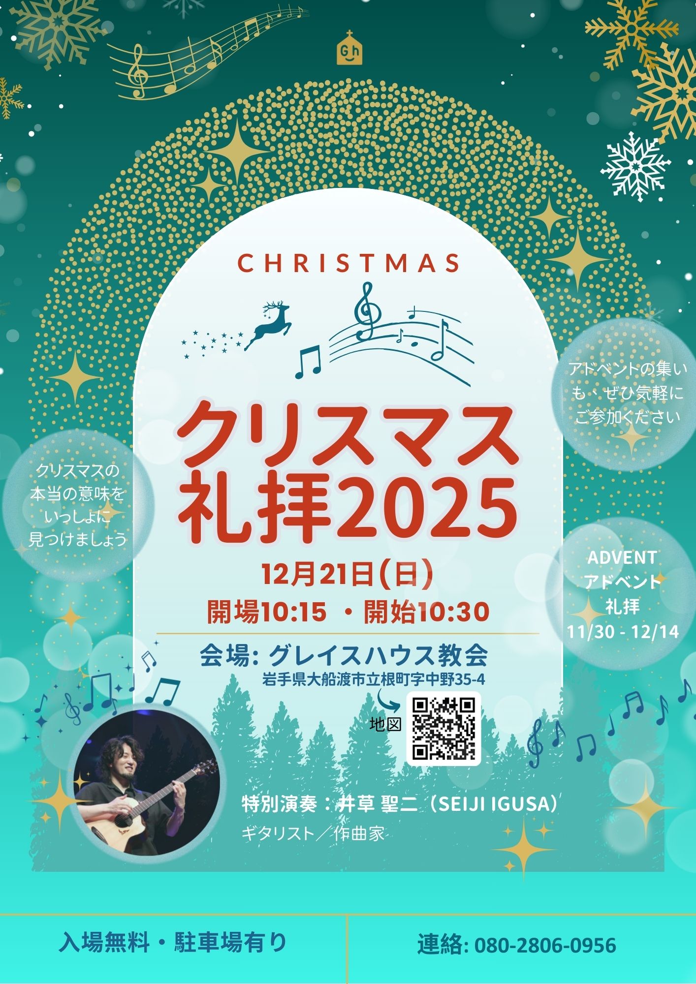 クリスマス礼拝 2025 10/31 Updated 2025.12.02 2025 10/31 Published 2025.10.31 / gracehousewebmaster \ この記事を共有 / B! リンクをコピーする クリスマス礼拝 gracehousewebmaster B! リンクをコピーする Calendar Add to Calendar Add to Timely Calendar Add to Google Add to Outlook Add to Apple Calendar Add to other calendar Export to XML When: 2025年12月21日 @ 10:00 AM – 11:30 AM 2025-12-21T10:00:00+09:00 2025-12-21T11:30:00+09:00 クリスマスの礼拝・特別演奏・参加費無料